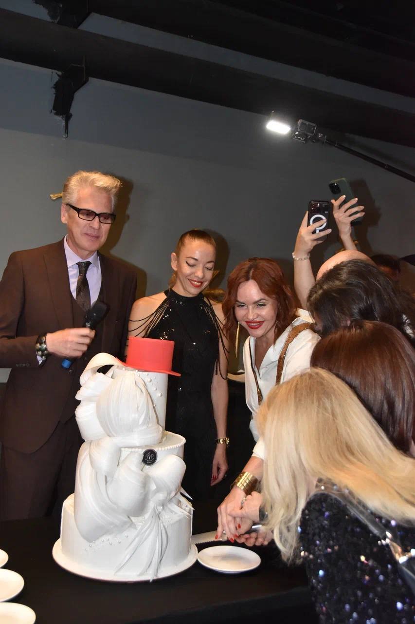 Торжество открыл сладкий сюрприз — великолепный торт, выполненный на заказ в фирменном стиле «Аллеи Моды». А затем со сцены прозвучал особенный подарок — гимн проекта, хит «Аллея Моды», который блестяще исполнила его автор, талантливая певица и артистка Екатерина Устименко-Бакумовская.