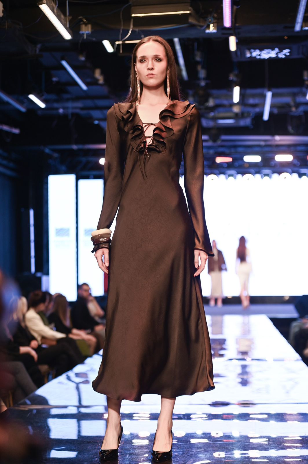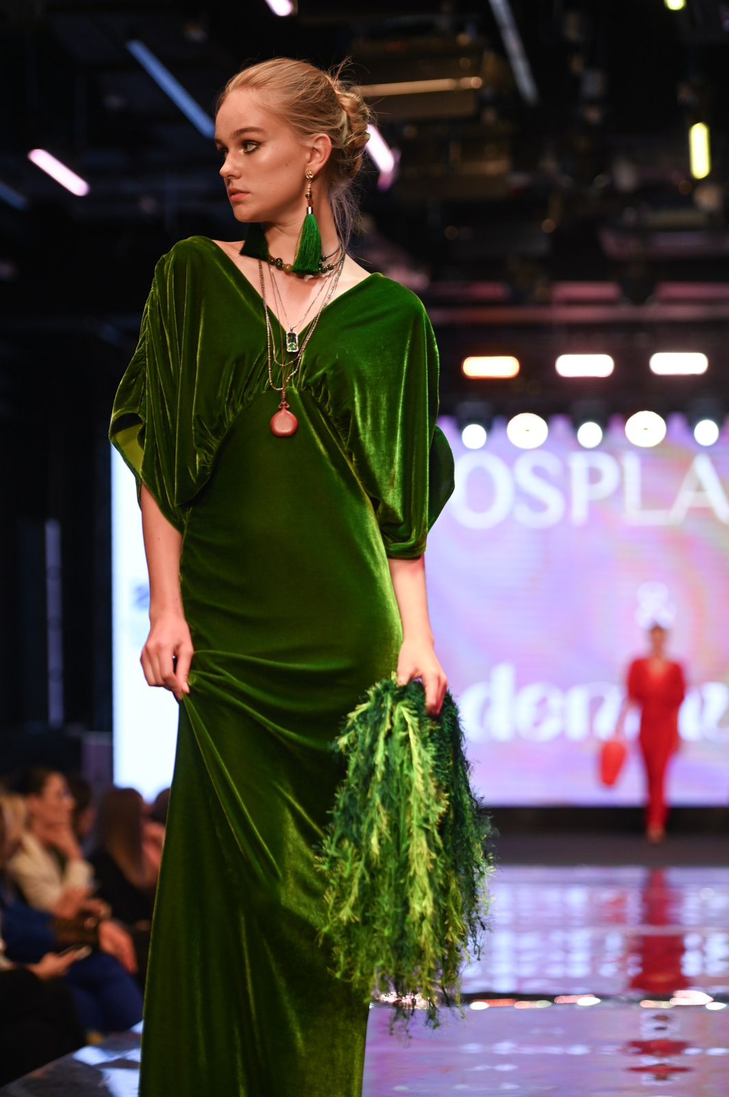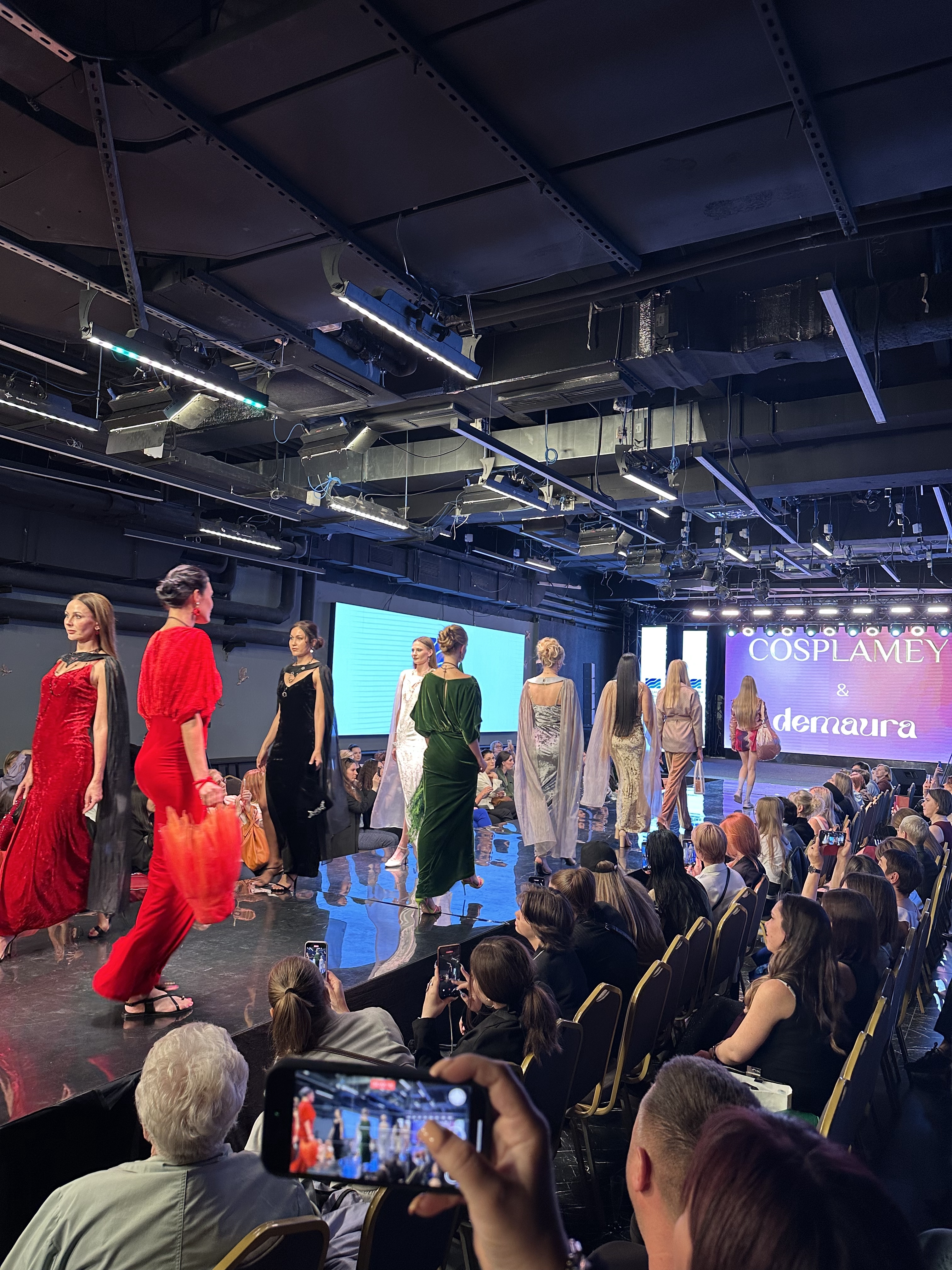 Следующим на подиум вышел бренд Cosplamey в сотрудничестве с брендом украшений Demaura, представившие изысканные вечерние платья, которые стали настоящим украшением вечера.